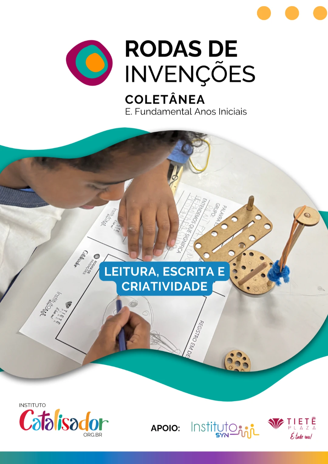 Fruto do projeto de mesmo nome, realizado pelo Instituto Catalisador com o apoio do Instituto Syn, área social do Tietê Plaza Shopping, a coletânea Rodas de Invenções: Leitura, Escrita e Criatividade reúne planos de aula que articulam leitura, escrita e construções criativas “mão na massa”, além de comentários, registros e reflexões da equipe. Todas as propostas foram desenvolvidas a partir da prática em sala de aula durante o primeiro semestre letivo de 2025, período em que trabalhamos em parceria com as professoras de seis turmas de 2º e 3º anos, de três escolas da rede municipal de São Paulo. Contamos também com a assessoria pedagógica da educadora e pesquisadora Giulianny Russo, especialista em alfabetização.