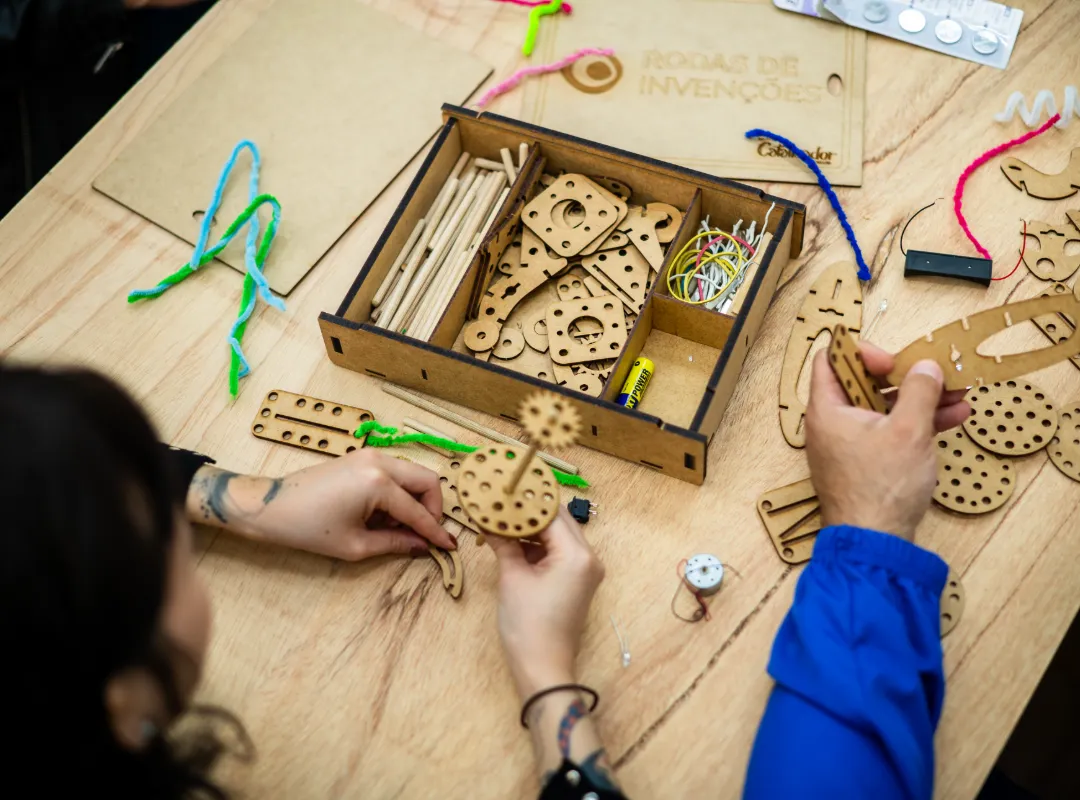 Criado para inspirar os estudantes a explorar, imaginar e criar, o projeto valoriza a autonomia, a expressão pessoal e a colaboração por meio de experiências práticas e significativas. Baseado na abordagem STEAM — que integra ciência, tecnologia, engenharia, artes e matemática —, a proposta promove também o pensamento crítico e a resolução de problemas, conectando diferentes saberes de forma criativa. Duas turmas de 9º ano e duas de 8º ano do Ensino Fundamental participam de um ciclo de oficinas desenvolvidas em parceria com seus professores, unindo ferramentas simples e metodologias inovadoras. Além das oficinas com os estudantes, o projeto inclui encontros formativos para vivência e compartilhamento das experiências com outros docentes da escola. Também será disponibilizado o curso online assíncrono Rodas de Invenções, ampliando o acesso à metodologia para todos os professores interessados.
